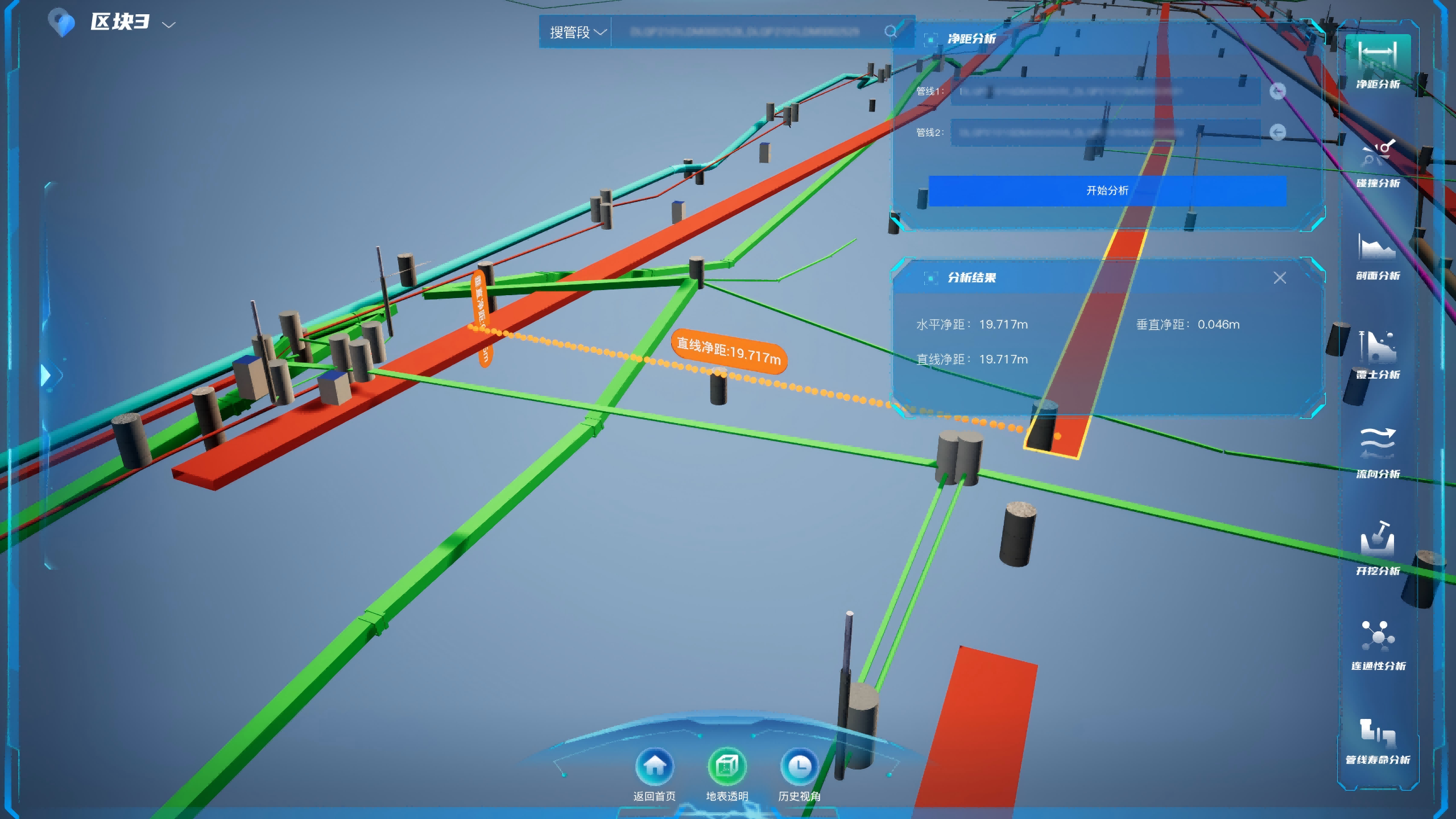 通过虚拟开挖、路径剖切、碰撞检测等功能,为规划设计单位和施工方提供辅助决策。可在施工前评估风险与影响,减少返工和事故,提升工程效率与质量。
