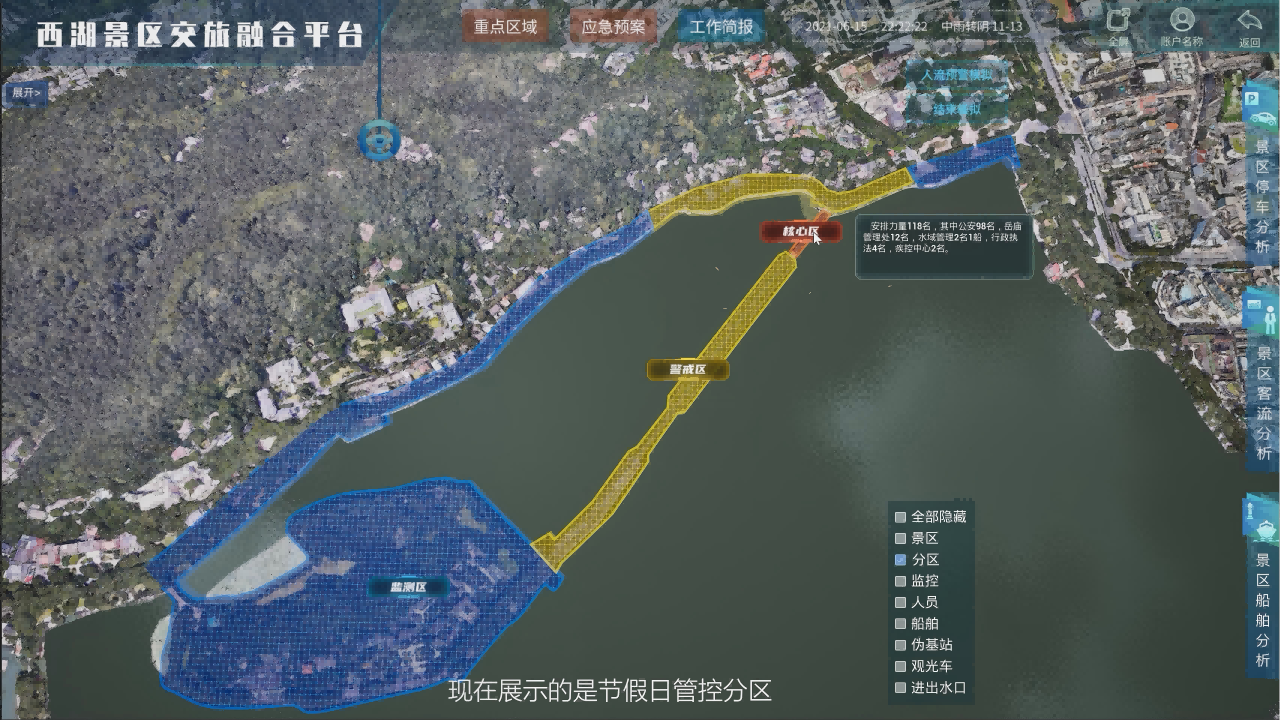 基于数字孪生的西湖景区交旅融合平台通过实时数据采集与智能控制,推动交通组织与游客分流的智能联动,提升管理效率与精细化水平。同时,利用数据汇聚能力科学预测景区及周边交通态势,数字孪生助力提升密集人流车流治理韧性、服务温度,为西湖景区的可持续发展提供有力支撑。